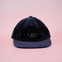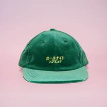 A cap embroidered with the words “ALL NIGHT HARAJUKU” in Japanese.